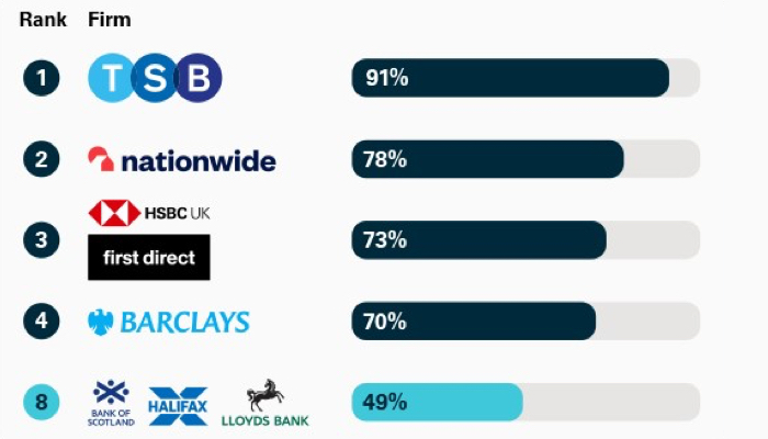 As part of a regulatory requirement, an independent survey was conducted to ask approximately 1,000 customers of each of the 16 largest personal current account providers if they would recommend their provider to friends and family. The results represent the view of customers who took part in the survey.